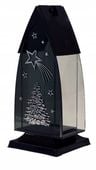 LAMPION W CZARNYM LAKIERZE Z LUSTREM Z WIZERUNKIEM CHOINKI W SREBRZE.