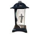 Piękny znicz całoroczny w kształcie kapliczki z aplikacją krzyża.