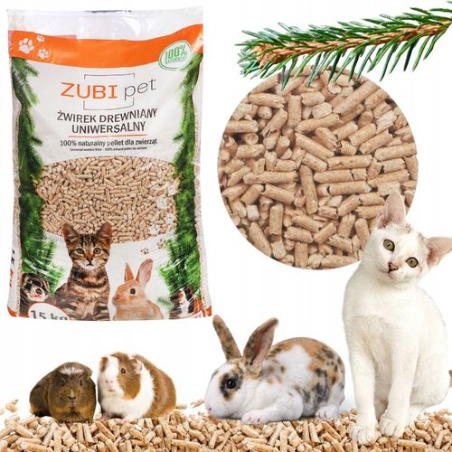 ✅ Nazwa handlowa: Żwirek drewniany Zubipet 15kg wyjątkowy dla zwierząt jasny pachnący lasem