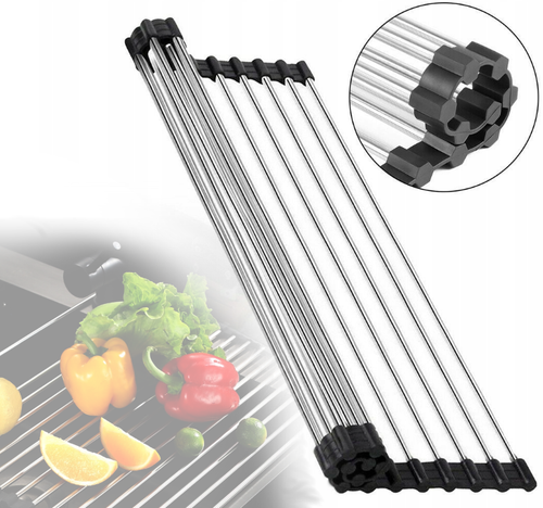 Wyposażony w 15 stalowych drążków i silikonowe obrzeża, nasz ociekacz nie tylko wygląda stylowo, ale jest również niezwykle funkcjonalny. Jego zwijana konstrukcja umożliwia łatwe przechowywanie i dostosowanie do różnych potrzeb kuchennych.