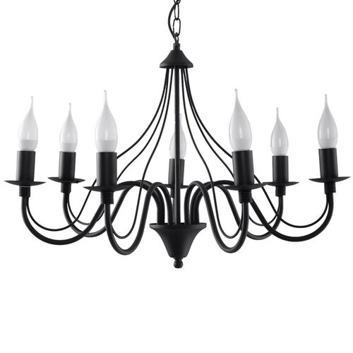 Ten żyrandol świecznikowy wyróżnia się bogatymi zdobieniami i elegancko wygiętymi ramionami, które przypominają kształt płomieni świec. Taki element wystroju doda nie tylko światła, ale również charakteru Twojemu salonowi, sypialni czy jadalni. Czerń i biel to klasyczne kolory, które łatwo wkomponować w każdą aranżację, a ich neutralność podkreśli piękno bogatych detali żyrandola.