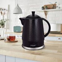 Wybór czajnika czarnego podyktowany jest najczęściej uniwersalnością tego koloru oraz łatwym dopasowaniem do wnętrz w każdym stylu. Osobom, które cenią klasyczną elegancję z nutką nowoczesności, polecamy zakupić czajnik czarny, lecz matowy. Ten niezwykle rzadko spotykany w kuchniach czajnik zawsze wzbudza zachwyt i olśniewa efektownym łączeniem tradycji z niekonwencjonalnym formatem.