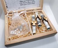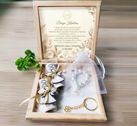 Pudełko na prezent z grawerem to znakomity pomysł na podarunek z okazji sakramentów, takich jak Chrzest Święty lub Pierwsza Komunia Święta. Jakiego rodzaju upominki na chrzest z grawerem znaleźć można na Arena.pl? Do wyboru są tutaj między innymi takie prezenty z grawerem na chrzest, jak srebrny obrazek z Aniołem Stróżem, okolicznościowe wydanie Biblii, medalik z Matką Boską czy skarbonka. A co, jeżeli chodzi o prezenty komunijne z grawerem? W roli prezentu z grawerem na komunię świetnie sprawdzi się na przykład złoty krzyżyk.