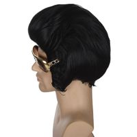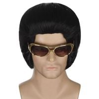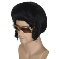 Peruka Męska Lata 50 60 Rock Roll Zestaw z Okularami Czarna 56cm Retro