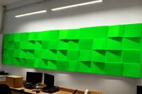 Oferujemy wiele form i kształtów: fale, kliny, piramidki, a także panele 3D—dostępne w różnych wersjach kolorystycznych i wykonane z pianki o otwartej strukturze porów, idealnej do pochłaniania echa i redukcji hałasu.