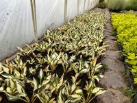 Specjalizujemy się w produkcji roślin okrywowych i cieniolubnych, szczególnie bluszczy i barwinków. Posiadamy też imponujący dobór funkii (ponad 100 odmian) i liliowców (ponad 200 odmian). Wszystkie rośliny (z wyjątkiem dużych krzewów i drzew, które oferujemy w balocie) uprawiamy i ekspediujemy w pojemnikach, co pozwala maksymalnie wydłużyć okres sprzedaży. Nie wysyłamy roślin tylko w czasie mroźnej zimy, kiedy śnieg i ujemne temperatury i tak uniemożliwiają sadzenie. Unikamy stosowania ochrony chemicznej, co hartuje nasze rośliny i zwiększa zdrowotność i przeżywalność w innych, często niekorzystnych warunkach u nabywcy.