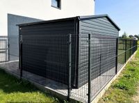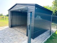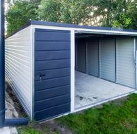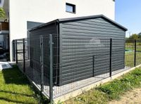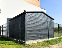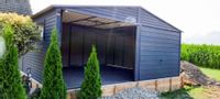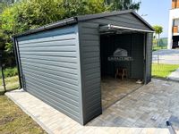 GARAŻ BLASZANY 4M X 5M - BRAMA UCHYLNA DRZWI RYNNY ANTRACYT 4X5 GB309