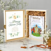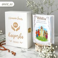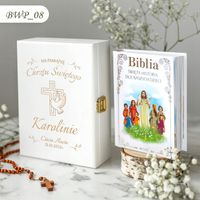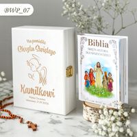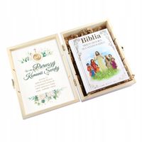 BIBLIA W PUDEŁKU Pamiątka Pierwszej Komunii Świętej PREZENT NA KOMUNIĘ