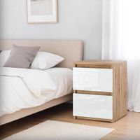 Szafka Nocna Z 2 Szufladami Nowoczesna Dla Dzieci Dąb Wotan Biały Połysk