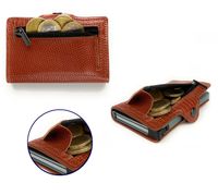 Portfel RFID na Karty Automatyczny Smukły Brązowy Skóra Krokodyla Alu