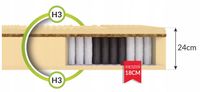 Materac sprężynowy kieszeniowy ANTYALERGICZNY 180 x 200 x 24cm H3 LATEKS