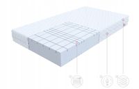 Materiały użyte przy produkcji materacy to różnego rodzaju pianki poliuretanowe, lateksy, visco itp., są to produkty o wysokim współczynniku ściśliwości oraz sprężystości, dlatego jako producent zastrzegamy sobie prawo do tolerancji ujemnej i dodatniej +/- 2% na szerokości i długości materaca oraz +/- 1 cm dla jego wysokości.