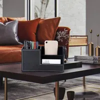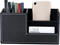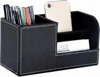 Skórzany organizer na biurko, przybornik na długopisy, telefon, pilot