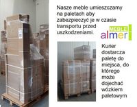 3. W przypadku mebli, które były dostarczane do klienta naszym kurierem lub naszym transportem, uszkodzone przesyłki są odbierane przez naszego kuriera. Termin odbioru jest ustalany w zależności od warunków przewozowych firmy kurierskiej. Jeśli produkt był odebrany z magazynu firmowego ALMER MEBLE, w celu zareklamowania należy go dostarczyć do punktu magazynowego ALMER MEBLE.