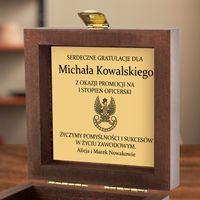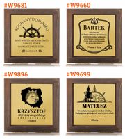 - W zależności od produktu, grawer może zostać wykonany bezpośrednio na produkcie lub na przymocowanej do niego mosiężnej bądź laminowanej tabliczce