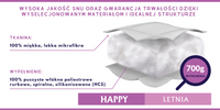 Od samego początku działania stawiamy na najwyższej jakości materiały – zarówno pokrycia, jak i wypełnienia – odpowiednie dla każdego, także osób zmagających się z rozmaitymi alergiami. Naszym celem jest tulenie do snu małych i dużych oraz dzielenie się z innymi wyjątkowym, mazurskim klimatem.