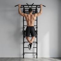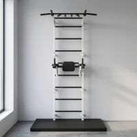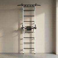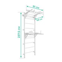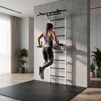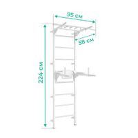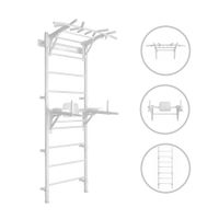 Absolutna łatwość montażu zestawu. Tata poradzi sobie z nim sam! Dostarczane drabinki są w formie złożonej, jako dwie zmontowane półdrabinki gotowe do nałożenia jedna na drugą. Forma konstruktora pozwala dołożyć dodatkowe elementy typu lina, koła gimnastyczne czy huśtawka. Osoby, które nie mogą się zdecydować gdzie taki zestaw zamontować – zawsze mogą wybrać wersję montowaną rozporowo między sufitem i podłogą, co nie wymaga wiercenia otworów w ścianie i pozwoli w przyszłości bezproblemowo przenieść drabinkę na nowe miejsce. Wersja rozporowa także dopasowuje się do wysokości mieszkania. Najmniejszy zestaw zajmuje zaledwie około 0,6 m2. Nasz zestaw Kometa-1 z powodzeniem został zamontowany w pokoju o powierzchni 10,5 m2.