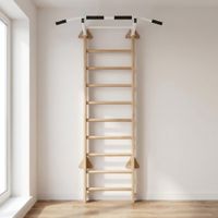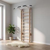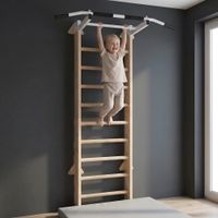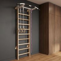 Absolutna łatwość montażu zestawu. Tata poradzi sobie z nim sam! Dostarczane drabinki są w formie złożonej, jako dwie zmontowane półdrabinki gotowe do nałożenia jedna na drugą. Forma konstruktora pozwala dołożyć dodatkowe elementy typu lina, koła gimnastyczne czy huśtawka. Osoby, które nie mogą się zdecydować gdzie taki zestaw zamontować – zawsze mogą wybrać wersję montowaną rozporowo między sufitem i podłogą, co nie wymaga wiercenia otworów w ścianie i pozwoli w przyszłości bezproblemowo przenieść drabinkę na nowe miejsce. Wersja rozporowa także dopasowuje się do wysokości mieszkania. Najmniejszy zestaw zajmuje zaledwie około 0,6 m2. Nasz zestaw Kometa-1 z powodzeniem został zamontowany w pokoju o powierzchni 10,5 m2.