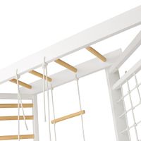 Wiele lat doświadczenia pozwoliły producentowi przewidzieć wszystko. Do zestawu można dobrać ogranicznik wchodzenia na drabinkę, na wypadek jeśli w domu jest mniejsze dziecko, które już garnie się do wchodzenia na wyżyny! Dla pomieszczeń wyższych niż 273 cm producent przewidział element wydłużający nawet o dodatkowe 52 cm. Ciekawe elementy składowe zestawów nie pozwolą dzieciom się nudzić: pajęczyna, huśtawka, lina, wężołaz i inne.