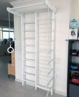 Absolutna łatwość montażu zestawu. Tata poradzi sobie z nim sam! Dostarczane drabinki są w formie złożonej, jako dwie zmontowane półdrabinki gotowe do nałożenia jedna na drugą. Forma konstruktora pozwala dołożyć dodatkowe elementy typu lina, koła gimnastyczne czy huśtawka. Osoby, które nie mogą się zdecydować gdzie taki zestaw zamontować – zawsze mogą wybrać wersję montowaną rozporowo między sufitem i podłogą, co nie wymaga wiercenia otworów w ścianie i pozwoli w przyszłości bezproblemowo przenieść drabinkę na nowe miejsce. Wersja rozporowa także dopasowuje się do wysokości mieszkania. Najmniejszy zestaw zajmuje zaledwie około 0,6 m2. Nasz zestaw Kometa-1 z powodzeniem został zamontowany w pokoju o powierzchni 10,5 m2.