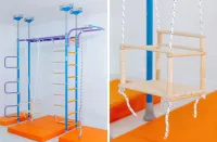 Wiele lat doświadczenia pozwoliły producentowi przewidzieć wszystko. Do zestawu można dobrać ogranicznik wchodzenia na drabinkę, na wypadek jeśli w domu jest mniejsze dziecko, które już garnie się do wchodzenia na wyżyny! Dla pomieszczeń wyższych niż 273 cm producent przewidział element wydłużający nawet o dodatkowe 52 cm. Ciekawe elementy składowe zestawów nie pozwolą dzieciom się nudzić: pajęczyna, huśtawka, lina, wężołaz i inne.