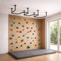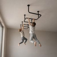 Absolutna łatwość montażu zestawu. Tata poradzi sobie z nim sam! Dostarczane drabinki są w formie złożonej, jako dwie zmontowane półdrabinki gotowe do nałożenia jedna na drugą. Forma konstruktora pozwala dołożyć dodatkowe elementy typu lina, koła gimnastyczne czy huśtawka. Osoby, które nie mogą się zdecydować gdzie taki zestaw zamontować – zawsze mogą wybrać wersję montowaną rozporowo między sufitem i podłogą, co nie wymaga wiercenia otworów w ścianie i pozwoli w przyszłości bezproblemowo przenieść drabinkę na nowe miejsce. Wersja rozporowa także dopasowuje się do wysokości mieszkania. Najmniejszy zestaw zajmuje zaledwie około 0,6 m2. Nasz zestaw Kometa-1 z powodzeniem został zamontowany w pokoju o powierzchni 10,5 m2.