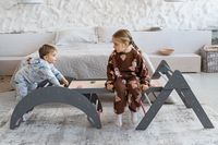 Zestawy są bez wątpienia bardzo solidnie wykonane, z najwyższej jakości materiałów. Konstrukcja łączy w sobie elementy metalowe, z drewna i plastikowe, co powoduje dużą wytrzymałość i zapewnia bardzo estetyczny wygląd. Stopnie drabinki są wykończone miękkim, plastikowym obiciem z wypustkami co zapobiega ślizganiu się nóg i rąk, a jednocześnie je masuje. Można z całą pewnością stwierdzić, że raz zakupiony zestaw posłuży wiele lat, a nawet dla kilku pokoleń. W ofercie dostępne są jaskrawe kolory dla maluszków i również stonowane odcienie dla nastolatków.