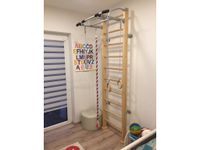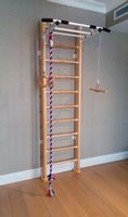 Absolutna łatwość montażu zestawu. Tata poradzi sobie z nim sam! Dostarczane drabinki są w formie złożonej, jako dwie zmontowane półdrabinki gotowe do nałożenia jedna na drugą. Forma konstruktora pozwala dołożyć dodatkowe elementy typu lina, koła gimnastyczne czy huśtawka. Osoby, które nie mogą się zdecydować gdzie taki zestaw zamontować – zawsze mogą wybrać wersję montowaną rozporowo między sufitem i podłogą, co nie wymaga wiercenia otworów w ścianie i pozwoli w przyszłości bezproblemowo przenieść drabinkę na nowe miejsce. Wersja rozporowa także dopasowuje się do wysokości mieszkania. Najmniejszy zestaw zajmuje zaledwie około 0,6 m2. Nasz zestaw Kometa-1 z powodzeniem został zamontowany w pokoju o powierzchni 10,5 m2.