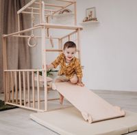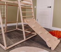 Wiele lat doświadczenia pozwoliły producentowi przewidzieć wszystko. Do zestawu można dobrać ogranicznik wchodzenia na drabinkę, na wypadek jeśli w domu jest mniejsze dziecko, które już garnie się do wchodzenia na wyżyny! Dla pomieszczeń wyższych niż 273 cm producent przewidział element wydłużający nawet o dodatkowe 52 cm. Ciekawe elementy składowe zestawów nie pozwolą dzieciom się nudzić: pajęczyna, huśtawka, lina, wężołaz i inne.