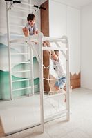 Wiele lat doświadczenia pozwoliły producentowi przewidzieć wszystko. Do zestawu można dobrać ogranicznik wchodzenia na drabinkę, na wypadek jeśli w domu jest mniejsze dziecko, które już garnie się do wchodzenia na wyżyny! Dla pomieszczeń wyższych niż 273 cm producent przewidział element wydłużający nawet o dodatkowe 52 cm. Ciekawe elementy składowe zestawów nie pozwolą dzieciom się nudzić: pajęczyna, huśtawka, lina, wężołaz i inne.