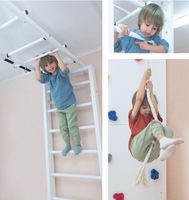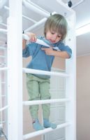 Wiele lat doświadczenia pozwoliły producentowi przewidzieć wszystko. Do zestawu można dobrać ogranicznik wchodzenia na drabinkę, na wypadek jeśli w domu jest mniejsze dziecko, które już garnie się do wchodzenia na wyżyny! Dla pomieszczeń wyższych niż 273 cm producent przewidział element wydłużający nawet o dodatkowe 52 cm. Ciekawe elementy składowe zestawów nie pozwolą dzieciom się nudzić: pajęczyna, huśtawka, lina, wężołaz i inne.