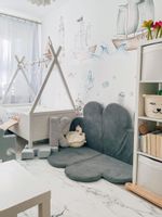 Absolutna łatwość montażu zestawu. Tata poradzi sobie z nim sam! Dostarczane drabinki są w formie złożonej, jako dwie zmontowane półdrabinki gotowe do nałożenia jedna na drugą. Forma konstruktora pozwala dołożyć dodatkowe elementy typu lina, koła gimnastyczne czy huśtawka. Osoby, które nie mogą się zdecydować gdzie taki zestaw zamontować – zawsze mogą wybrać wersję montowaną rozporowo między sufitem i podłogą, co nie wymaga wiercenia otworów w ścianie i pozwoli w przyszłości bezproblemowo przenieść drabinkę na nowe miejsce. Wersja rozporowa także dopasowuje się do wysokości mieszkania. Najmniejszy zestaw zajmuje zaledwie około 0,6 m2. Nasz zestaw Kometa-1 z powodzeniem został zamontowany w pokoju o powierzchni 10,5 m2.