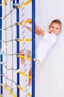 Absolutna łatwość montażu zestawu. Tata poradzi sobie z nim sam! Dostarczane drabinki są w formie złożonej, jako dwie zmontowane półdrabinki gotowe do nałożenia jedna na drugą. Forma konstruktora pozwala dołożyć dodatkowe elementy typu lina, koła gimnastyczne czy huśtawka. Osoby, które nie mogą się zdecydować gdzie taki zestaw zamontować – zawsze mogą wybrać wersję montowaną rozporowo między sufitem i podłogą, co nie wymaga wiercenia otworów w ścianie i pozwoli w przyszłości bezproblemowo przenieść drabinkę na nowe miejsce. Wersja rozporowa także dopasowuje się do wysokości mieszkania. Najmniejszy zestaw zajmuje zaledwie około 0,6 m2. Nasz zestaw Kometa-1 z powodzeniem został zamontowany w pokoju o powierzchni 10,5 m2.