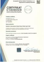 Rodzinne zestawy sportowo-rozrywkowe posiadają certyfikat zgodności z wymogami norm europejskich, co daje Państwu gwarancję jakości i bezpieczeństwa produktu. Certyfikat można pobrać w zakładce Pliki do pobrania. Wszystkie elementy zewnętrzne nie powinny mieć ostrych kątów i nierówności. Wszystkie złączki gwintowane zestawu sportowego powinny być zaślepione dekoracyjnymi, plastikowymi zaślepkami, a inne części muszą być gładkie. Wyrób zalecany jest dla dzieci powyżej 3 roku życia. Poszczególne modele drabinek wytrzymują obciążenie do 100 kg. Podczas wykonania badań przez jednostkę wydającą certyfikat, zestaw obciąża się obciążeniem równym 150 kg, natomiast producent przeprowadza badania przy obciążeniu masą 230 kg. Instrukcja użytkowania zawiera dokładną informację o sposobie montażu zestawu sportowego, wskazania do prawidłowego i bezpiecznego użytkowania, zalecenie do konsultacji z lekarzem lub trenerem przed rozpoczęciem ćwiczeń na zestawie sportowym.