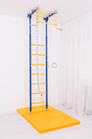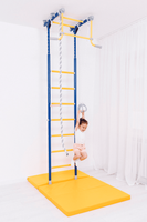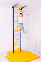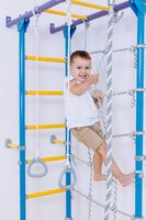 Absolutna łatwość montażu zestawu. Tata poradzi sobie z nim sam! Dostarczane drabinki są w formie złożonej, jako dwie zmontowane półdrabinki gotowe do nałożenia jedna na drugą. Forma konstruktora pozwala dołożyć dodatkowe elementy typu lina, koła gimnastyczne czy huśtawka. Osoby, które nie mogą się zdecydować gdzie taki zestaw zamontować – zawsze mogą wybrać wersję montowaną rozporowo między sufitem i podłogą, co nie wymaga wiercenia otworów w ścianie i pozwoli w przyszłości bezproblemowo przenieść drabinkę na nowe miejsce. Wersja rozporowa także dopasowuje się do wysokości mieszkania. Najmniejszy zestaw zajmuje zaledwie około 0,6 m2. Nasz zestaw Kometa-1 z powodzeniem został zamontowany w pokoju o powierzchni 10,5 m2.