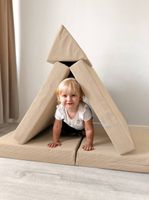 Absolutna łatwość montażu zestawu. Tata poradzi sobie z nim sam! Dostarczane drabinki są w formie złożonej, jako dwie zmontowane półdrabinki gotowe do nałożenia jedna na drugą. Forma konstruktora pozwala dołożyć dodatkowe elementy typu lina, koła gimnastyczne czy huśtawka. Osoby, które nie mogą się zdecydować gdzie taki zestaw zamontować – zawsze mogą wybrać wersję montowaną rozporowo między sufitem i podłogą, co nie wymaga wiercenia otworów w ścianie i pozwoli w przyszłości bezproblemowo przenieść drabinkę na nowe miejsce. Wersja rozporowa także dopasowuje się do wysokości mieszkania. Najmniejszy zestaw zajmuje zaledwie około 0,6 m2. Nasz zestaw Kometa-1 z powodzeniem został zamontowany w pokoju o powierzchni 10,5 m2.