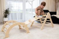 Zestawy są bez wątpienia bardzo solidnie wykonane, z najwyższej jakości materiałów. Konstrukcja łączy w sobie elementy metalowe, z drewna i plastikowe, co powoduje dużą wytrzymałość i zapewnia bardzo estetyczny wygląd. Stopnie drabinki są wykończone miękkim, plastikowym obiciem z wypustkami co zapobiega ślizganiu się nóg i rąk, a jednocześnie je masuje. Można z całą pewnością stwierdzić, że raz zakupiony zestaw posłuży wiele lat, a nawet dla kilku pokoleń. W ofercie dostępne są jaskrawe kolory dla maluszków i również stonowane odcienie dla nastolatków.