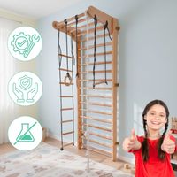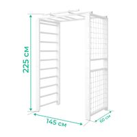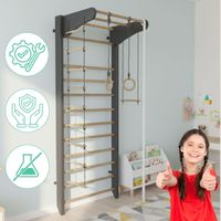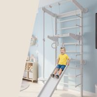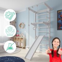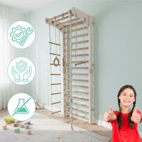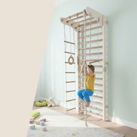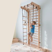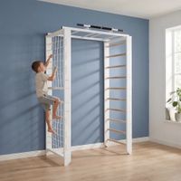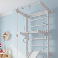 Wiele lat doświadczenia pozwoliły producentowi przewidzieć wszystko. Do zestawu można dobrać ogranicznik wchodzenia na drabinkę, na wypadek jeśli w domu jest mniejsze dziecko, które już garnie się do wchodzenia na wyżyny! Dla pomieszczeń wyższych niż 273 cm producent przewidział element wydłużający nawet o dodatkowe 52 cm. Ciekawe elementy składowe zestawów nie pozwolą dzieciom się nudzić: pajęczyna, huśtawka, lina, wężołaz i inne.