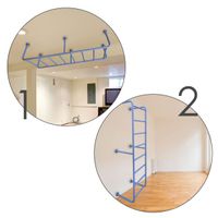 Absolutna łatwość montażu zestawu. Tata poradzi sobie z nim sam! Dostarczane drabinki są w formie złożonej, jako dwie zmontowane półdrabinki gotowe do nałożenia jedna na drugą. Forma konstruktora pozwala dołożyć dodatkowe elementy typu lina, koła gimnastyczne czy huśtawka. Osoby, które nie mogą się zdecydować gdzie taki zestaw zamontować – zawsze mogą wybrać wersję montowaną rozporowo między sufitem i podłogą, co nie wymaga wiercenia otworów w ścianie i pozwoli w przyszłości bezproblemowo przenieść drabinkę na nowe miejsce. Wersja rozporowa także dopasowuje się do wysokości mieszkania. Najmniejszy zestaw zajmuje zaledwie około 0,6 m2. Nasz zestaw Kometa-1 z powodzeniem został zamontowany w pokoju o powierzchni 10,5 m2.