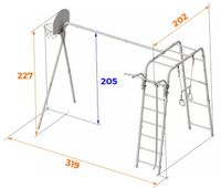 Wiele lat doświadczenia pozwoliły producentowi przewidzieć wszystko. Do zestawu można dobrać ogranicznik wchodzenia na drabinkę, na wypadek jeśli w domu jest mniejsze dziecko, które już garnie się do wchodzenia na wyżyny! Dla pomieszczeń wyższych niż 273 cm producent przewidział element wydłużający nawet o dodatkowe 52 cm. Ciekawe elementy składowe zestawów nie pozwolą dzieciom się nudzić: pajęczyna, huśtawka, lina, wężołaz i inne.