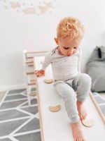 Absolutna łatwość montażu zestawu. Tata poradzi sobie z nim sam! Dostarczane drabinki są w formie złożonej, jako dwie zmontowane półdrabinki gotowe do nałożenia jedna na drugą. Forma konstruktora pozwala dołożyć dodatkowe elementy typu lina, koła gimnastyczne czy huśtawka. Osoby, które nie mogą się zdecydować gdzie taki zestaw zamontować – zawsze mogą wybrać wersję montowaną rozporowo między sufitem i podłogą, co nie wymaga wiercenia otworów w ścianie i pozwoli w przyszłości bezproblemowo przenieść drabinkę na nowe miejsce. Wersja rozporowa także dopasowuje się do wysokości mieszkania. Najmniejszy zestaw zajmuje zaledwie około 0,6 m2. Nasz zestaw Kometa-1 z powodzeniem został zamontowany w pokoju o powierzchni 10,5 m2.
