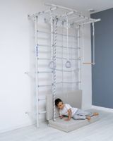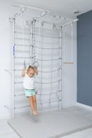 Wiele lat doświadczenia pozwoliły producentowi przewidzieć wszystko. Do zestawu można dobrać ogranicznik wchodzenia na drabinkę, na wypadek jeśli w domu jest mniejsze dziecko, które już garnie się do wchodzenia na wyżyny! Dla pomieszczeń wyższych niż 273 cm producent przewidział element wydłużający nawet o dodatkowe 52 cm. Ciekawe elementy składowe zestawów nie pozwolą dzieciom się nudzić: pajęczyna, huśtawka, lina, wężołaz i inne.