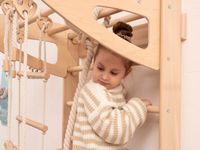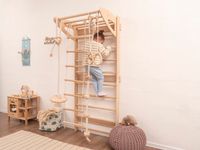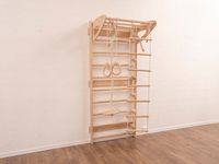 Wiele lat doświadczenia pozwoliły producentowi przewidzieć wszystko. Do zestawu można dobrać ogranicznik wchodzenia na drabinkę, na wypadek jeśli w domu jest mniejsze dziecko, które już garnie się do wchodzenia na wyżyny! Dla pomieszczeń wyższych niż 273 cm producent przewidział element wydłużający nawet o dodatkowe 52 cm. Ciekawe elementy składowe zestawów nie pozwolą dzieciom się nudzić: pajęczyna, huśtawka, lina, wężołaz i inne.