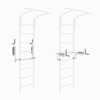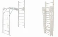 Absolutna łatwość montażu zestawu. Tata poradzi sobie z nim sam! Dostarczane drabinki są w formie złożonej, jako dwie zmontowane półdrabinki gotowe do nałożenia jedna na drugą. Forma konstruktora pozwala dołożyć dodatkowe elementy typu lina, koła gimnastyczne czy huśtawka. Osoby, które nie mogą się zdecydować gdzie taki zestaw zamontować – zawsze mogą wybrać wersję montowaną rozporowo między sufitem i podłogą, co nie wymaga wiercenia otworów w ścianie i pozwoli w przyszłości bezproblemowo przenieść drabinkę na nowe miejsce. Wersja rozporowa także dopasowuje się do wysokości mieszkania. Najmniejszy zestaw zajmuje zaledwie około 0,6 m2. Nasz zestaw Kometa-1 z powodzeniem został zamontowany w pokoju o powierzchni 10,5 m2.