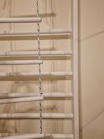 Absolutna łatwość montażu zestawu. Tata poradzi sobie z nim sam! Dostarczane drabinki są w formie złożonej, jako dwie zmontowane półdrabinki gotowe do nałożenia jedna na drugą. Forma konstruktora pozwala dołożyć dodatkowe elementy typu lina, koła gimnastyczne czy huśtawka. Osoby, które nie mogą się zdecydować gdzie taki zestaw zamontować – zawsze mogą wybrać wersję montowaną rozporowo między sufitem i podłogą, co nie wymaga wiercenia otworów w ścianie i pozwoli w przyszłości bezproblemowo przenieść drabinkę na nowe miejsce. Wersja rozporowa także dopasowuje się do wysokości mieszkania. Najmniejszy zestaw zajmuje zaledwie około 0,6 m2. Nasz zestaw Kometa-1 z powodzeniem został zamontowany w pokoju o powierzchni 10,5 m2.