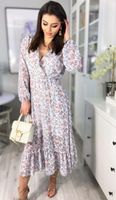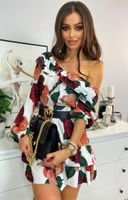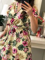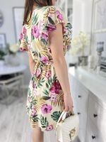 Sukienka mini w kwiaty z falbankami kopertowa NATURALLY