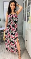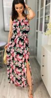 Sukienka maxi czarna w kwiaty z rozcięciem TIFANNI